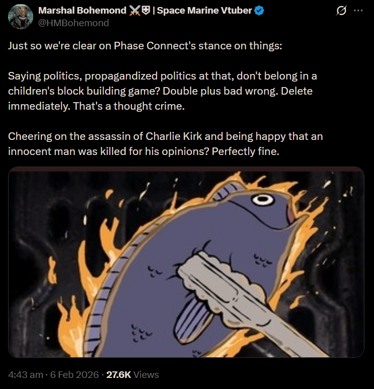 I dont remember Jelly representing phase connect company, you guys are fucking weird as hell, this is the same thing as saying if there is a pedophile nazi supremacist in a game development team, the game they are making is for pedos despite it just being a simple time travel platform game.