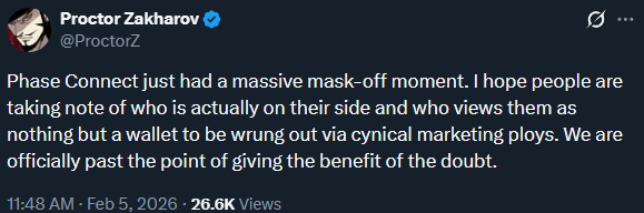 >>109188414FIshman is not that retarded, but what phasetroons feared the most became reality.... they have to go back on their word just to appease sponsors. Boy I remember the days when they said Phase would never stoop so low, that they are so much better, so much more enlightened, of course everyone is a beacon of freedom until a fat paycheck is in the talks, then your values suddenly change.Phase connect became a Black Company