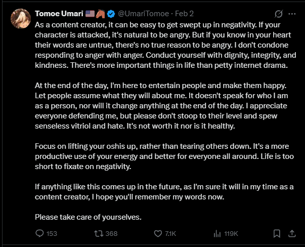 >>109191783idk they made it about their whole company now if any of their girls tries to be "based" for easy laughs from retards they can get shit on
