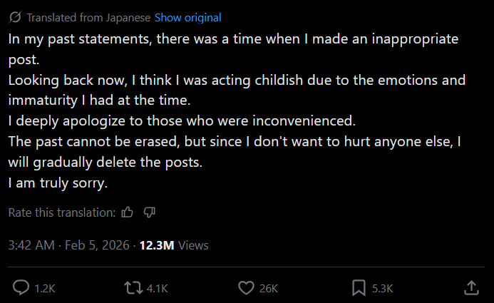 >>109187744>Deletes your tweet>Apologizes to the community