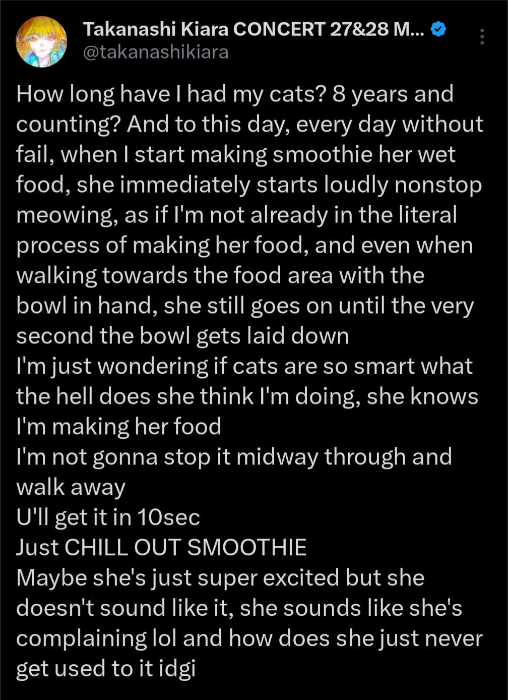 I stopped watching streams around Christmas because I traveled to visit family and something in my head switched in the time away. I’ve watched maybe ten streams since then and most of them aren’t even from my oshi. Somehow I just don’t feel like going back. I think I really checked out a long time ago and I’ve just been watching out of habit.
