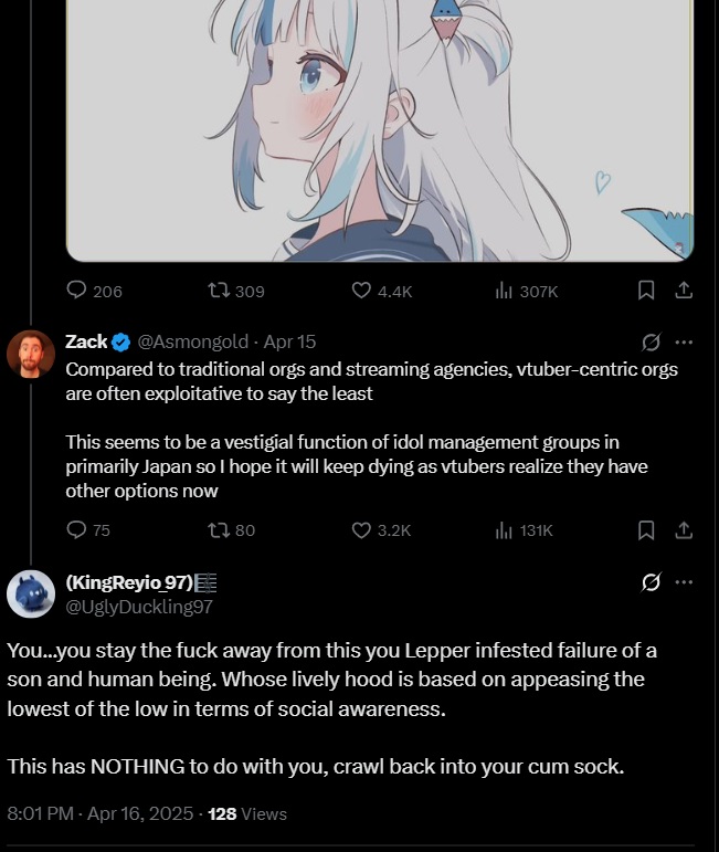 >>109191540Holofans were able to fend him off because it wasn't the first nor the last time some flesh fag had tried to leech off Hololive's popularity and their problems (hell just three months before we had to deal with Fauna)But Asmonrat is almost a Phase streamer for Phaseniggers, and they don't know how to close ranks, not all, so what will they do now?