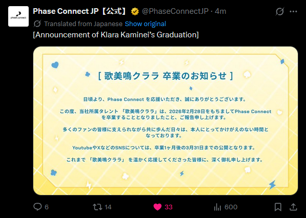 >>109205204I expect they will. They simply didn't announce it yet because multiple graduations in one day is devastating to a corpo's image.People forget that Twisty and Aster's terminations were announced on separate days too.
