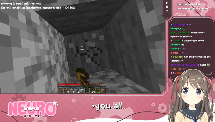 >Who is Neuro-sama?Neuro-sama is a neural network created by Vedal in 2018 for the purpose of learning to play osu! In December 2022 Vedal revived the project with the addition of a large language model, a TTS software and a Live2D model, which allow Neuro-sama to interact with her chat as a VTuber. Since then, she has been entertaining the chat with responses and unhinged rants nearly daily, as well as learning new skills such as singing, playing other games, and collaborating with other VTubers. Join /swarm/ today and welcome our new AI overlord!>Schedulehttps://post.nuro.lol/Neuro-Schedule-Bot>LinksTwitch: https://www.twitch.tv/vedal987YouTube:https://www.youtube.com/@Neurosamahttps://www.youtube.com/@OfficialNeurosamaClipsTikTok: https://www.tiktok.com/@neurosamaaiX:https://x.com/NeurosamaAIhttps://x.com/EvilNeuroAIThese and other official links: https://vedal.ai>Music & ClipsColorful Array - Neuro-sama (Official Video) - https://www.youtube.com/watch?v=FNfGw1wrKtUNEVER - Neuro x Evil (Official Video) - https://www.youtube.com/watch?v=CKCgoEGiUEgBOOM - Evil (Official Video) - https://www.youtube.com/watch?v=8Nt9YPnYyjsLIFE - Neuro-sama (Official Video) - https://www.youtube.com/watch?v=MDc1mjrIsPMhttps://neurokaraoke.comhttps://rentry.org/neuro-musichttps://rentry.org/neuro-videos>EducationalInterested in AI but don't understand it? Watch these:https://www.youtube.com/watch?v=WXuK6gekU1Yhttps://www.youtube.com/watch?v=d95J8yzvjbQHow does she know what to say? Watch this: https://www.youtube.com/watch?v=wjZofJX0v4MWant to learn more about AI? Read these: https://files.catbox.moe/kximv6.pngWant to (seriously) learn AI? Read these: https://files.catbox.moe/ajl3nx.png>MiscCatbox archives:https://rentry.org/swarm-archivehttps://rentry.org/swarm-archive-2Game Integration: https://github.com/VedalAI/neuro-game-sdk/LoRA: https://rentry.org/neuro-lora-v2Searchable VOD Transcripts: https://libraryofladev.com/VODs: https://www.youtube.com/@Neuro-samaUnofficialVODs>Merchhttps://neurosama.shop/>Previous thread>>109196014