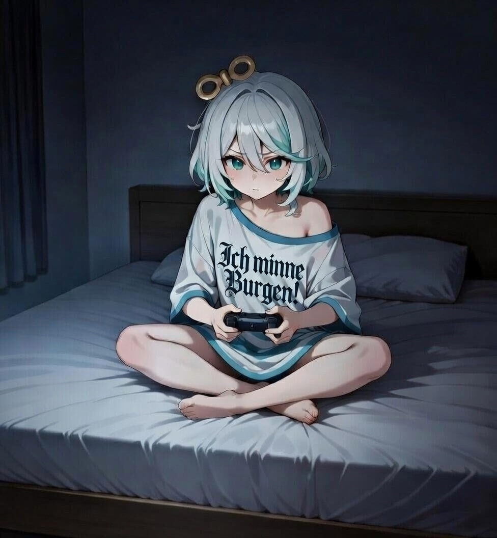 >>109225413i was sinking about her telling us of family trips to random castles. so of course she she needed a shirt sayin "I love castles" in medieval german dialect. same goes for the post which translates to "and thus sat the girl in her room, indulging in her favorite pastime"