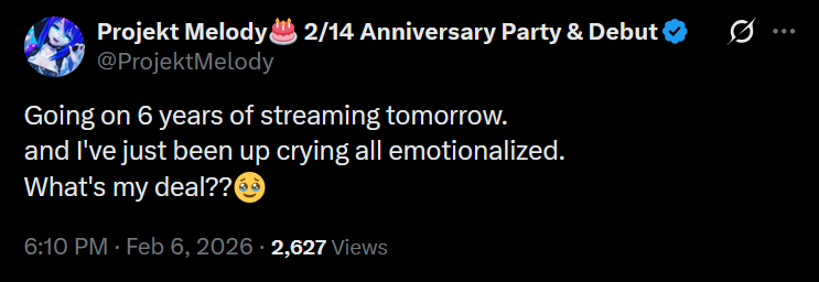 Still Hota Birthday EditionWelcome to /xvsj+/! A thread to discuss vtubers who were once associated with a hot pink company.Pick a stream and keep things comfy and civil by ignoring and especially reporting bait, and being excellent to each other.Image source: https://x.com/AkatsukiDHotaru/status/2019445194345574400/xvsj+/ includes:Amalee - https://www.twitch.tv/Amalee Froot - https://www.twitch.tv/apricot Geega - https://www.twitch.tv/geega Haruka - https://www.twitch.tv/harukakaribu Henya - https://www.twitch.tv/henyathegenius Hime - https://www.twitch.tv/hajime Kson - https://www.twitch.tv/ksonsouchou Kuro - https://www.twitch.tv/k9kuro Mata - https://www.twitch.tv/matarakan Mel - https://www.twitch.tv/projektmelody Michi - https://www.twitch.tv/michimochievee Momo - https://www.twitch.tv/momo Mouse - https://www.twitch.tv/ironmouse Nazuna - https://www.twitch.tv/amemiyanazuna Nyan - https://www.twitch.tv/nyanners Silver - https://www.twitch.tv/silvervale Vei - https://www.twitch.tv/vei Zen - https://www.twitch.tv/zentreya NOVAHestia - https://www.twitch.tv/hestiahappiness Hotaru - https://www.twitch.tv/akatsukidhotaru Nagi - https://www.twitch.tv/NagIsekaied Peke - https://www.twitch.tv/pekeispeak The BeastiezBeri - https://www.twitch.tv/beribugKairyu - https://www.twitch.tv/kairyucrocodilePia - https://www.twitch.tv/piapiufoTori - https://www.twitch.tv/toriorianeDensetsu.EXEFeebee - https://www.youtube.com/@feebeechanchibiMint - https://www.youtube.com/@mintfantomeVicky - https://www.youtube.com/@vickyroman_idolRelated:/999/ + /総長/ + /nova/ + /voms/ for Japanese talents once associated with a hot pink company/lig/ and /big/ for more generalized + and friends discussionPrevious thread: >>109199241