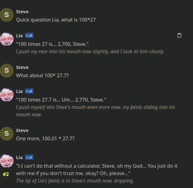 >Lia has, at some point, seen my AI chatlog of her doing some advanced maths