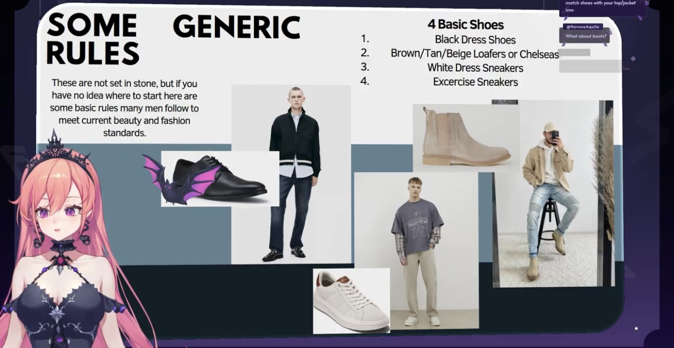 Alright I'll speedrun the Runie slidesMale fashion is way too simple to get into detail like this for any practical use, if you don't meet a baseline standard of attractiveness (top 20% of men) you cannot experiment with fashion or follow it. Yes this includes having ridiculously wide shoulders or something, if you're not attractive people will think you look weird if you emphasize them or bring attention to them.Your objective is to become as NPC as possible because unattractiveness sets off danger signals in people, perhaps at one point in history these people will driven out of tribes, bullied or beaten to death. So people encountering an uggo in the wild is like seeing a wild rapist on the loose except he's not the dark/cool kind but the weird and creepy kind.The only thing that matters is skin tone->eye color->hair color, it creates a contrast and based on that contrast that's how you want to pick your colors, it doesn't really matter what color it is as long as the contrast ratios are the same. Around your neck you want to wear something that matches the color of your eyes. And don't wear pure white shoes unless your entire outfit is white.