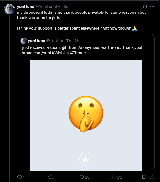 >>109235754At least this means she isn't locked out of her account. I really hope she doesn't leave. I like having Jelly around.