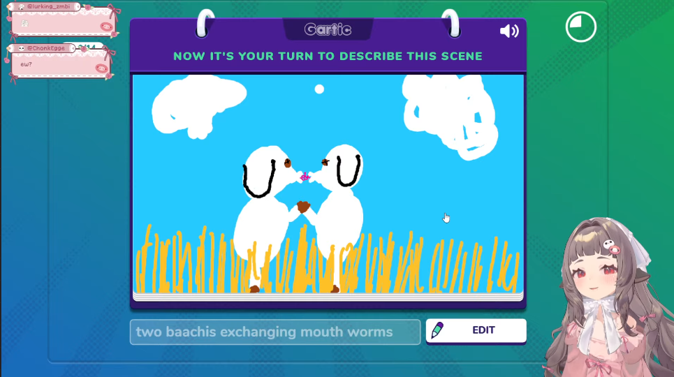>>109235976It's so funny watching her brain work out in real time that boo sounds like moo followed by "gay little ghost finds her boo" then laughing at her own joke