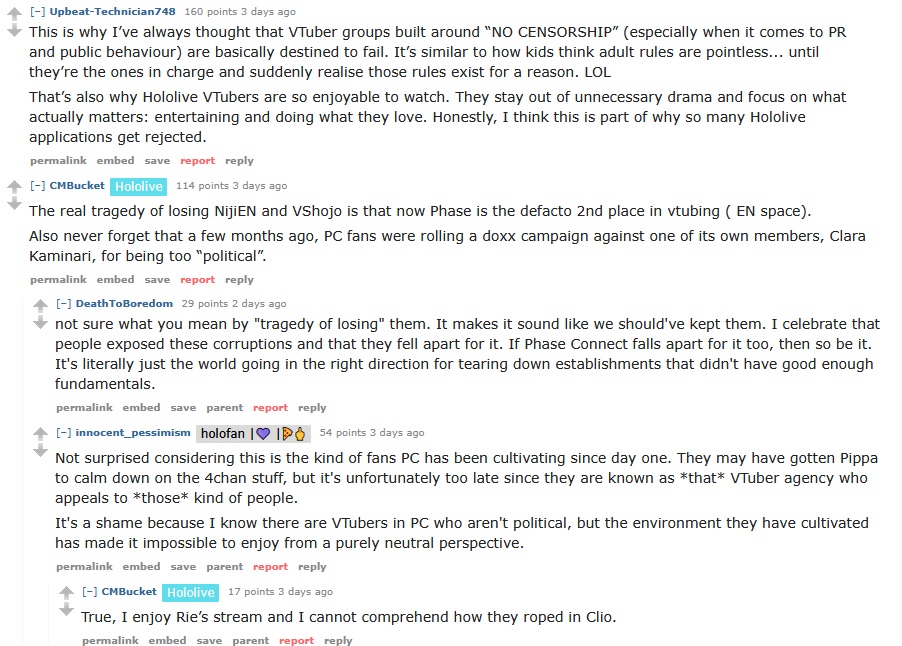 I just hope Phase gets the same obsessive, nonstop, psychotic treatment from antis that Nijisanji did, people constantly talking shit in the replies to every single twitter post, creating an entire subreddit where redditors react to every little thing they do as if it's the worst thing in the world, and so on. It's only fair. Of course, it's unlikely considering the redditors who post there ARE the Phase fanbase, but it's fun to dream.