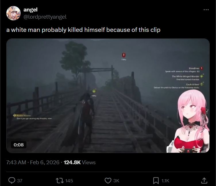 Shit like this is why I just can’t get into MoriLike yeah it was someone messing with her in chat, but the fact that she said this out loud on stream will never go awayShe will always be the girl that made some cringe rap years ago and then talked about having a Blacked fetish