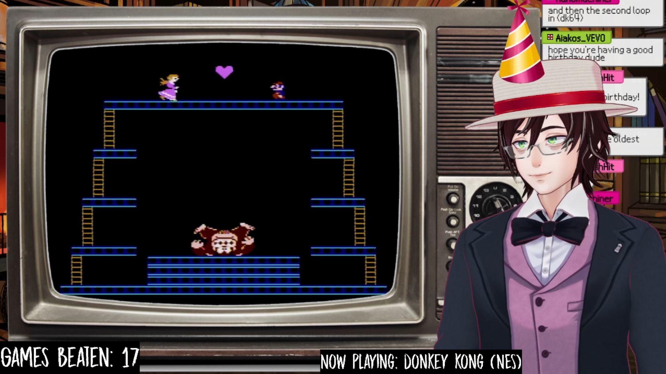 Bloom is celebrating his birthday by beating 39 games in 1 stream. So far he's 16 down and 12 hours into the stream. https://www.twitch.tv/profbloomvtuber