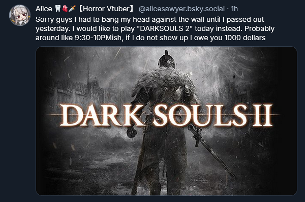 It's time to Dark Souls 2 with Alicehttps://www.twitch.tv/alicesawyerhttps://www.twitch.tv/alicesawyerhttps://www.twitch.tv/alicesawyer