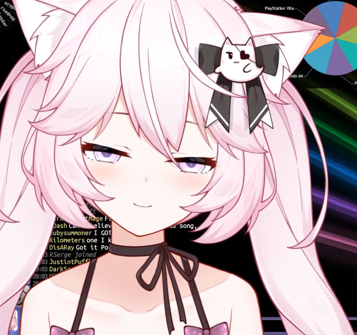 Nina has cat ears, and tail Nina. I'm guessing she uses it with chat channel points rather than when she's feeling like naughty cat, or playful kitten. It must be very difficult to play with toggles if the chat has to do it for you.