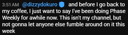 >Phase Weekly pushed back another ~30 minutesUh-oh
