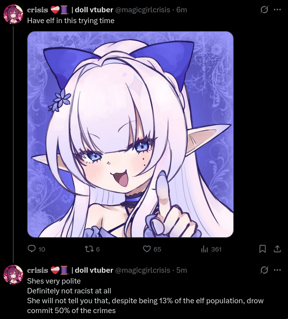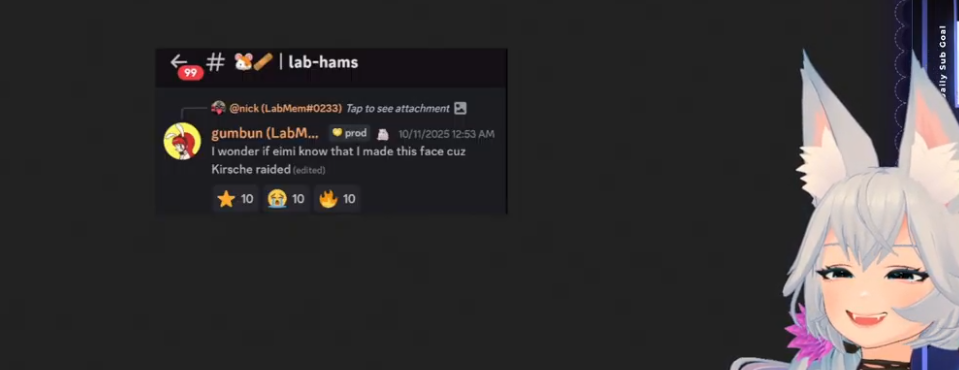 >>109261286>NGL this stream combined with the specific phasers who were present in chat brightened up my mood. The good ones are all together on this and that's what matters to me.It's likely much higher. You need to remember a bunch of them have IRL jobs and commitments (Airi, Runie, etc) so they couldn't be there but still love Jelly.