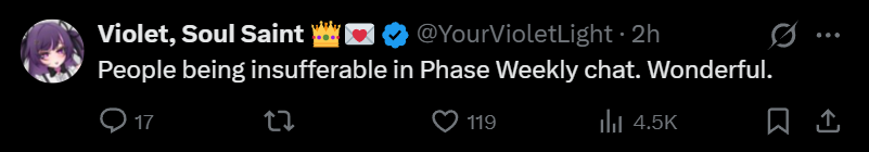 I don't think starknights belong in phase community. We want sad girls to soothe our broken souls, they want to yell JASED JITLERCan you imagine kirsche viewers crying over From our hearts? I can't.phase connect.