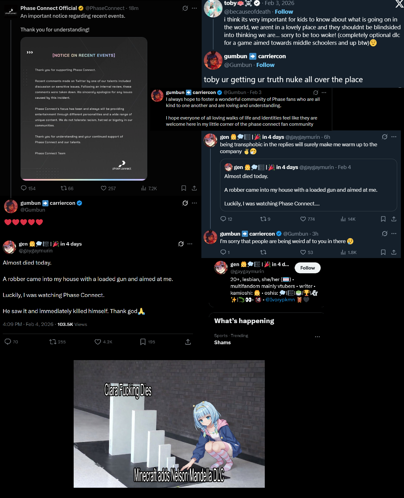>>109272761we can't control the touristing grifters on x that keep bringing up clara and are harassing the talents but the point is that us who actually care about phase actually just want them to sincerely apologize for throwing her under the bus