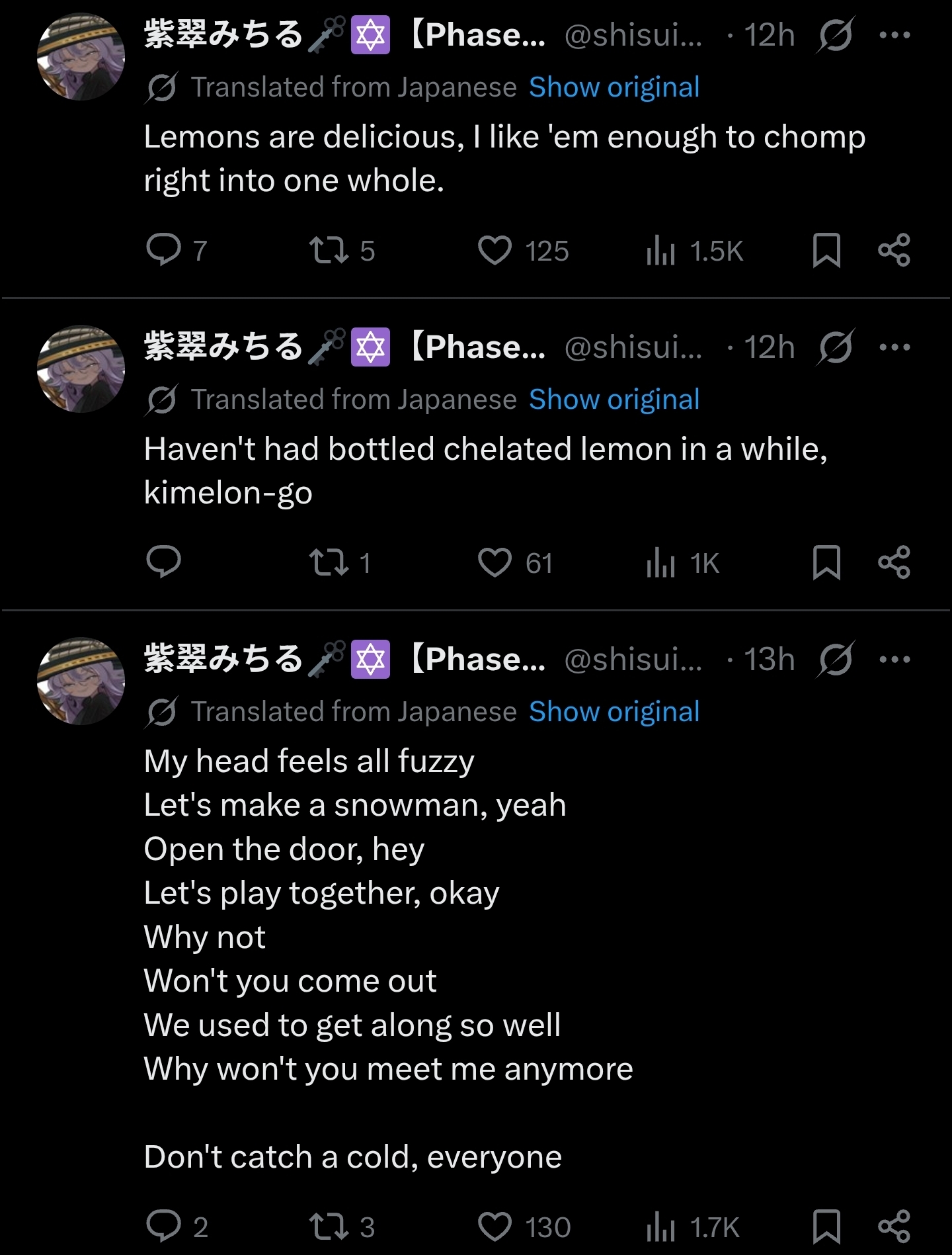 ▼ Phase Connect LinksOfficial Website: https://phase-connect.comOfficial Schedule: https://schedule.phase-connect.comOfficial Twitter: https://x.com/PhaseConnect | https://x.com/PhaseConnectJPOfficial Character References: https://rentry.org/pcgreferencesOfficial Twitch Archive Channels: https://rentry.org/pcgtwitcharchiveUnofficial Phase Connect Archives: https://rentry.org/pcgunofficialarchive––––––––––––––––––––––––––––––––––◆【Lia】https://x.com/rinkouashelia | https://youtube.com/RinkouAshelia | https://twitch.tv/asheliarinkou◆【Utatane Nasa】転寝ナサ (JP) https://x.com/UtataneNasa | https://youtube.com/UtataneNasa | https://twitch.tv/utatanenasa◆【Hakushika Iori】白鹿いおり (JP + EN) https://x.com/hakushikaiori | https://youtube.com/HakushikaIori | https://twitch.tv/iorihakushika◆【Fujikura Uruka】https://x.com/fujikurauruka | https://youtube.com/FujikuraUruka | https://twitch.tv/fujikurauruka◆【Shisui Michiru】紫翠みちる (JP) https://x.com/shisuimichiru | https://youtube.com/ShisuiMichiru | https://twitch.tv/michiru_shisui◆【Tenma Maemi】https://x.com/tenmamaemi | https://youtube.com/TenmaMaemi | https://twitch.tv/tenma◆【Pipkin Pippa】https://x.com/pipkinpippa | https://youtube.com/PipkinPippa | https://twitch.tv/pippa––––––––––––––––––––––––––––––––––◆【Kaneko Lumi】https://x.com/kaneko_lumi | https://youtube.com/KanekoLumi | https://twitch.tv/kanekolumi◆【Fuura Yuri】[Terminated] https://x.com/AmarisYuri | Archive: https://youtube.com/@TheNationalFuuraYuriArchive◆【Dizzy Dokuro】https://x.com/dizzydokuro | https://youtube.com/@dizzydokuro | https://twitch.tv/dizzydokuro◆【Jelly Hoshiumi】https://x.com/jellyhoshiumi | https://youtube.com/@jellyhoshiumi | https://twitch.tv/jellyhoshiumi◆【Ember Amane】https://x.com/emberamane | https://youtube.com/@EmberAmane | https://twitch.tv/emberamane◆【Clio Aite】https://x.com/ClioAite | https://youtube.com/@ClioAite | https://twitch.tv/clioaite◆【MariMari_en】https://x.com/MARIMARI_EN | https://youtube.com/@MARIMARI_EN | https://twitch.tv/marimari_en◆【Eepy Sleepy】https://x.com/EepySleepyCh | https://youtube.com/@EepySleepyCh | https://twitch.tv/EepySleepy––––––––––––––––––––––––––––––––––◆【Remilia Nephys】https://x.com/Remilia_Nephys | https://youtube.com/RemiliaNephys | https://twitch.tv/remilianephys◆【Chisaka Airi】https://x.com/ChisakaAiri | https://youtube.com/ChisakaAiri | https://twitch.tv/chisakaairi◆【Amanogawa Shiina】https://x.com/AmanogawaShiina | https://youtube.com/AmanogawaShiina | https://twitch.tv/amanogawashiina◆【Himemiya Rie】https://x.com/HimemiyaRie | https://youtube.com/HimemiyaRie | https://twitch.tv/himemiyarie◆【Erina Makina】https://x.com/ErinaMakina | https://youtube.com/ErinaMakina | https://twitch.tv/erinamakina◆【Komachi Panko】https://x.com/komachipanko | https://youtube.com/KomachiPanko | https://twitch.tv/komachipanko––––––––––––––––––––––––––––––––––◆【Runie Ruse】https://x.com/RunieRuse | https://youtube.com/@RunieRuse | https://twitch.tv/RunieRuse◆【Eimi Isami】https://x.com/eimiisami | https://youtube.com/@eimiisami | https://twitch.tv/eimiisami◆【Muu Muyu】https://x.com/Muu_Muyu | https://youtube.com/@MuuMuyu | https://twitch.tv/MuuMuyu◆【Hikanari Hina】https://x.com/HikanariHina | https://youtube.com/@HikanariHina | https://twitch.tv/HikanariHina◆【Saya Sairroxs】[Graduated] https://x.com/sayasairroxs | https://youtube.com/@sayasairroxs | https://twitch.tv/sayasairroxs––––––––––––––––––––––––––––––––––◆【Kannagi Loki】巫ロキ (JP) https://x.com/kannagiloki | https://youtube.com/@kannagiloki ◆【Kokoromo Memory】[Graduated] https://x.com/kokoromomemory | https://youtube.com/@kokoromomemory_ | https://twitch.tv/kokoromomemory◆【Gram Pico】倉夢ぴこ (JP) https://x.com/grampico_ | https://youtube.com/@grampico | https://twitch.tv/grampico◆【Ayase Yuu】絢世ユウ (JP) https://x.com/ayaseyuuu | https://youtube.com/@ayaseyuu | https://twitch.tv/ayaseyuu_◆【Kaminari Clara】歌美鳴クララ (EN + JP) https://x.com/kaminariclara_ | https://youtube.com/@kaminariclara | https://twitch.tv/kaminariclara––––––––––––––––––––––––––––––––––◆【Malice Evermore】https://x.com/MaliceEvermore | https://youtube.com/@maliceevermore | https://twitch.tv/maliceevermore◆【Nitya Nil】https://x.com/Nitya_Nil | https://youtube.com/@Nitya_Nil | https://twitch.tv/nitya_nil◆【Wilhelmina Frost】https://x.com/wilhelminafr0st | https://youtube.com/@wilhelminafrost | https://twitch.tv/wilhelminafrost◆【Bibi Biscuit】https://x.com/BibiBiscuitCh | https://youtube.com/@bibibiscuitch | https://twitch.tv/bibibiscuitch◆【Anya Nyabyss】https://x.com/AnyaNyabyss | https://youtube.com/@AnyaNyabyss | https://twitch.tv/anyanyabyss◆【Sinon Sinfonia】https://x.com/SinonSinfonia | https://youtube.com/@SinonSinfonia | https://twitch.tv/sinonsinfoniaPrevious Thread: >>109264458