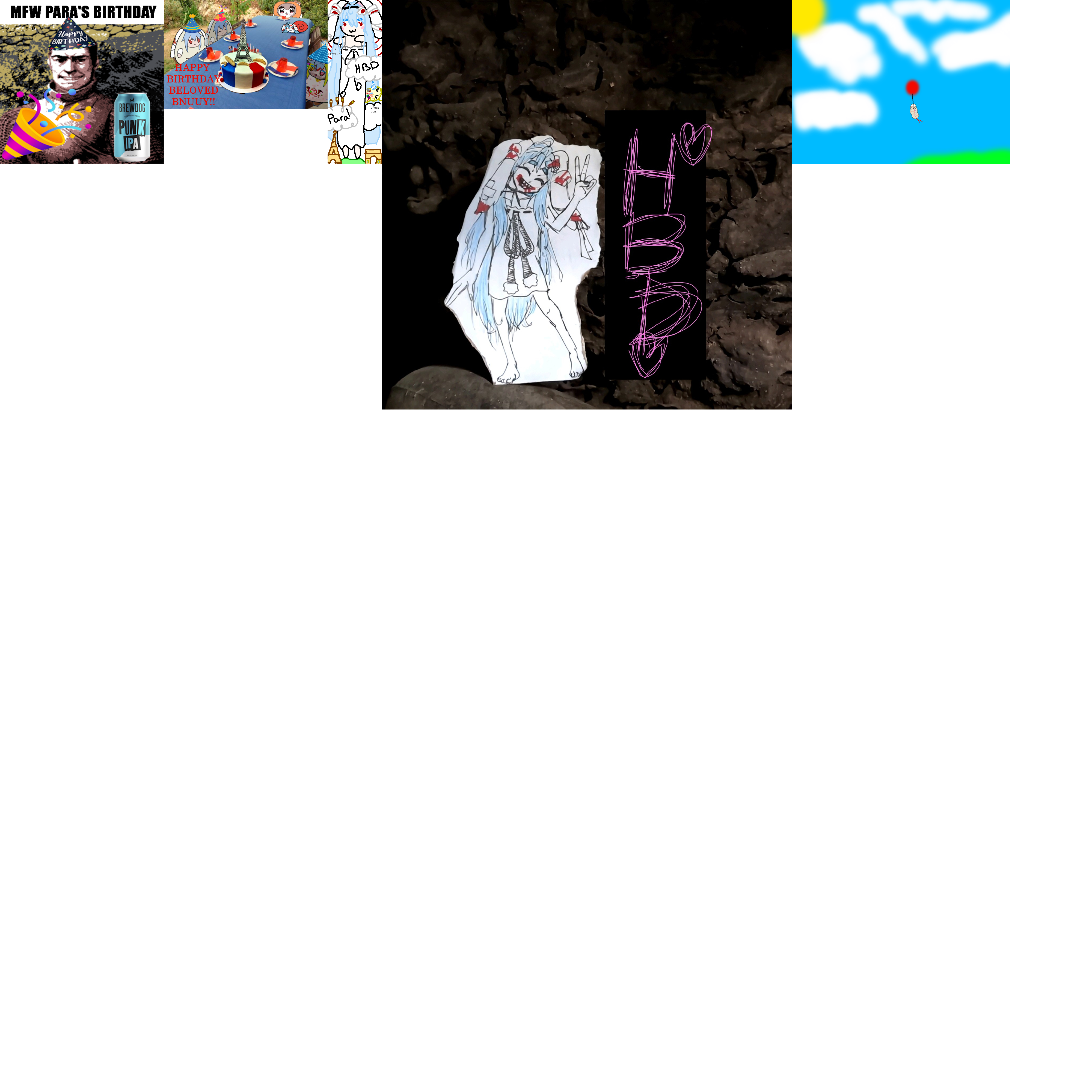 In 24 hours it'll be Para's birthday, show your appreciation by contributing to her birthday card! Standard card rules apply: submissions must be SFW and have image dimensions that are a multiple of 200 (i.e. 200x200, 400x400, 200x400). Submissions close at 1am EST the day of so please try to get your tile in by then.Model references:https://files.catbox.moe/i3bspv.pnghttps://files.catbox.moe/64pg23.pnghttps://twitter.com/wwparasiVT/status/1747075143430529457https://files.catbox.moe/yz83tj.pnghttps://files.catbox.moe/gisk2d.pnghttps://files.catbox.moe/o49h5j.pnghttps://mega.nz/folder/d28SUKQB#jtLoV8sDAUfQYFgow4yPvwKoikatsu card:https://files.catbox.moe/nkuosa.pngSome of Para's hobbies/interests for inspiration:>Her friends (non-inclusive): Essie_ch (her oshi), Krumroll, Kibawoo, Kikitchiwi (french), Miaelou (french), Rimaeri, Gloomi>Guro and grotesque things in general>Touhou (Cirno, Reisen, Flandre, Remilia, Tewi)>Meat (raw or rare) and food in general. She cooked beef tartar and sheep brain on stream.>Drinking beer (her favorite is Asahi (also french beers)) and tea>Drawing>Rioting (she used to run from cops?)>Drunk driving>Bunnies and sheeps>Playing guitar (and singing)>French culture>Insects (beetles, maggots?)>Movies (avant-garde, Takashi Miike, japanese movies)>Games (rhythm, half-life, dusk, silent hill)