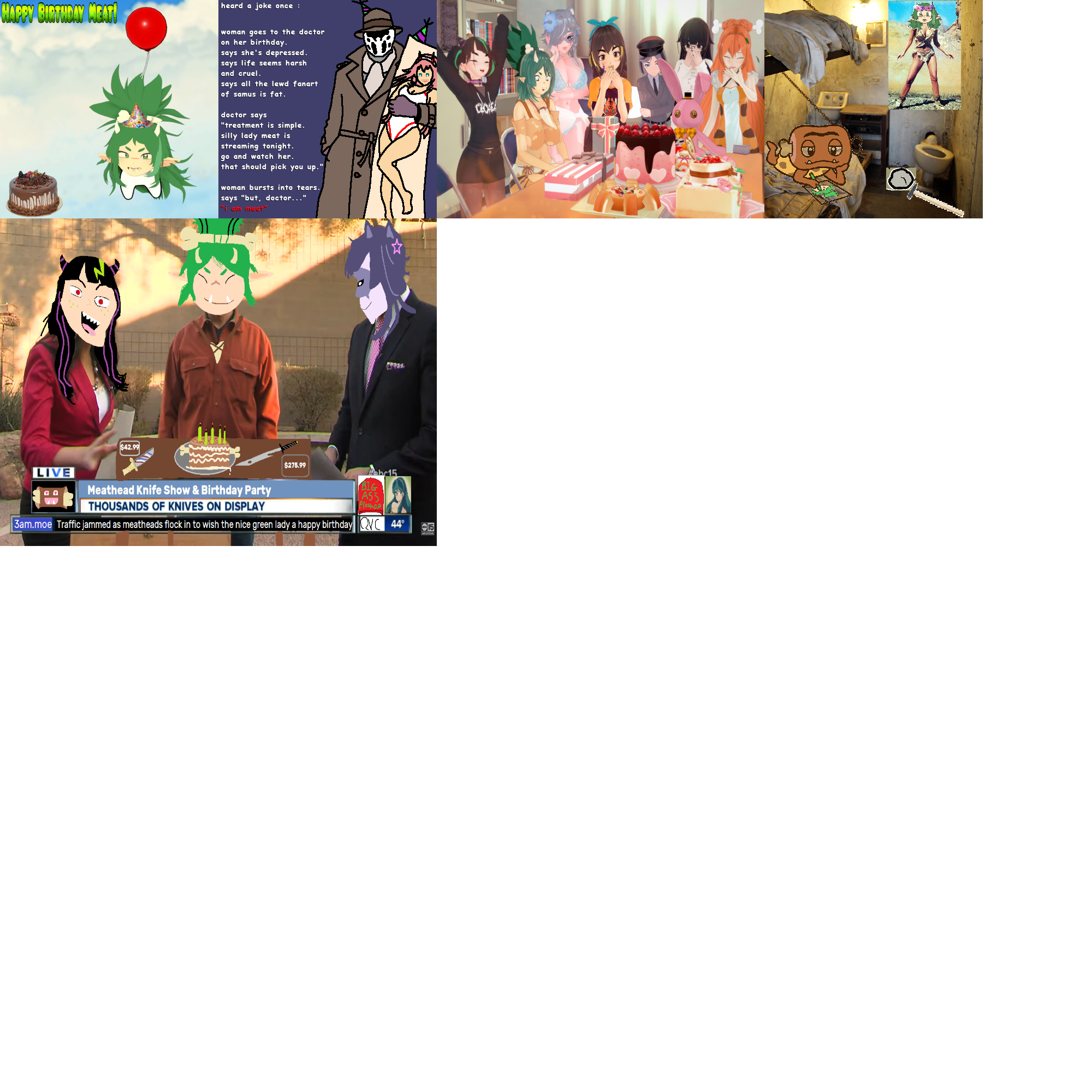 In TWENTY FOUR HOURS it'll be Meat's birthday, show your appreciation by contributing to her birthday card! Standard card rules apply: Submissions must be SFW and have image dimensions that are a multiple of 200 (i.e. 200x200, 400x400, 200x400)Some things Meat likes for inspiration:>Her friends (non-inclusive): 3AM, Southside, Weeniedesu, Lucy Pyre>Her meatheads>Cats>Wrestling>Trucking>QVC>Omaru Polka>My Chemical Romance>Vidya (Baby Steps, EDF, Suda51, Nier, DMC series, Red Dead Redemption 1, Stellar Blade)>YouTubers (Carpet Bagger, Joe is Hungry, Dr. Parkinstine)Model References:https://mega.nz/folder/kvsXwayQ#oT-vuahxz4nLi7MvGJbloAThe deadline for the card is February 9th at midnight EST, that's 9pm February 8th for PST. Make sure you get your submissions in before then