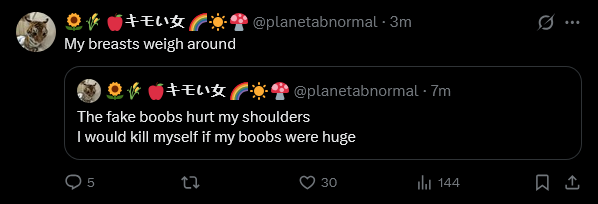 Ok, she posted it. She also posted a picture of her thigh. https://x.com/planetabnormal/status/2020354899507310626