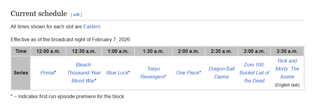 >>109279036Yeah, back in the day Bebop and Inuyasha and shit were on Adult Swim rather than Toonami.>>109279039Yeah, in 2012. Airs on Saturdays.