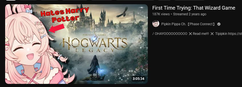 >>109284175>>Pippa : "I don't want politics in vtubing or in games"Thank you for reminding me, not about the Hogwarts shit, she JUST had a fucking on stream melty over polslop in games over that detective game. Nothing happened.