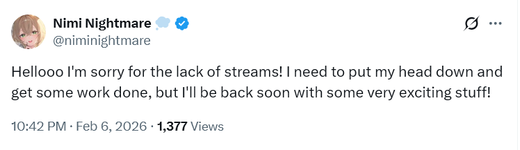 >>109284155She's still working on her 3D anniversary plus she's probably sick.