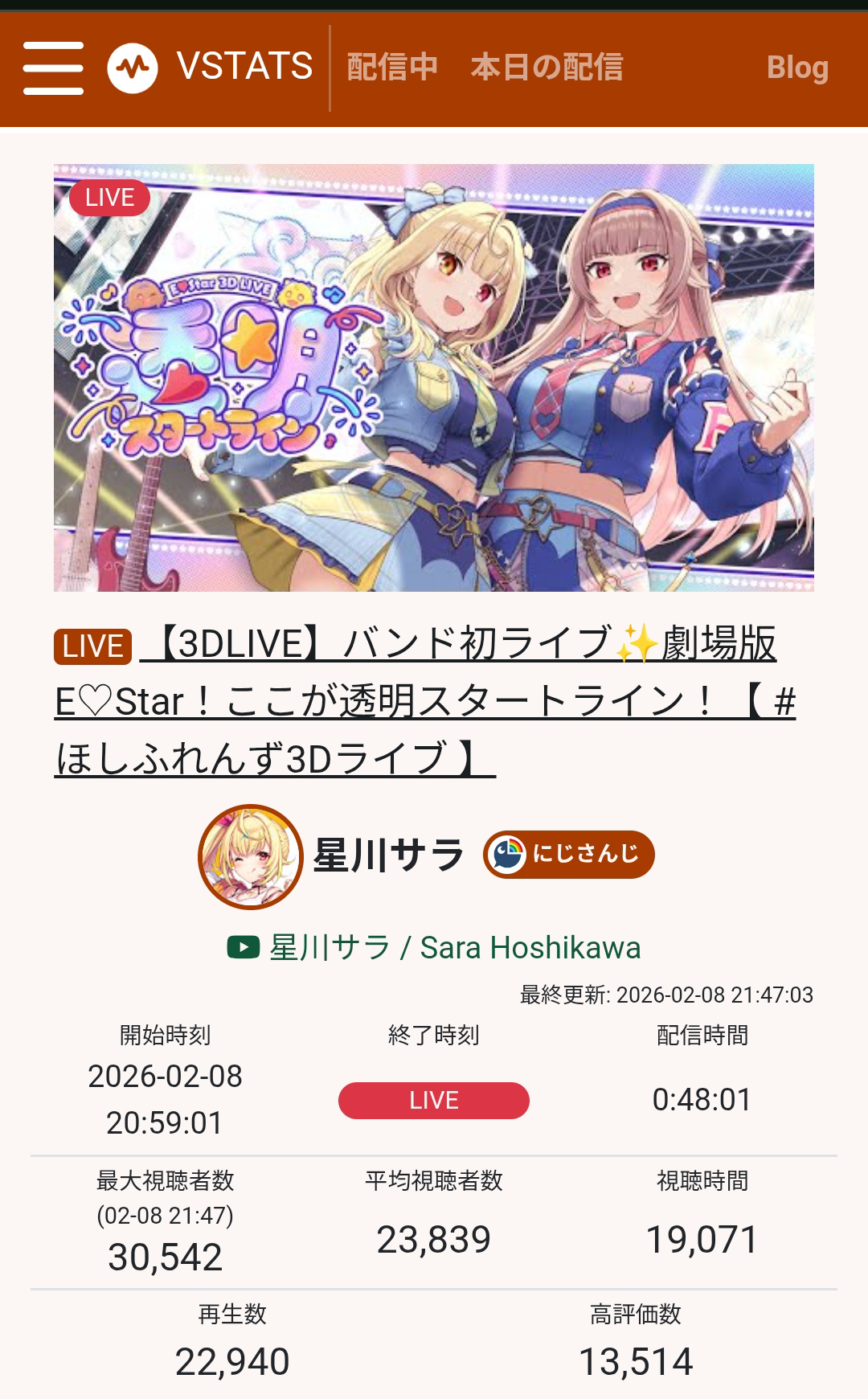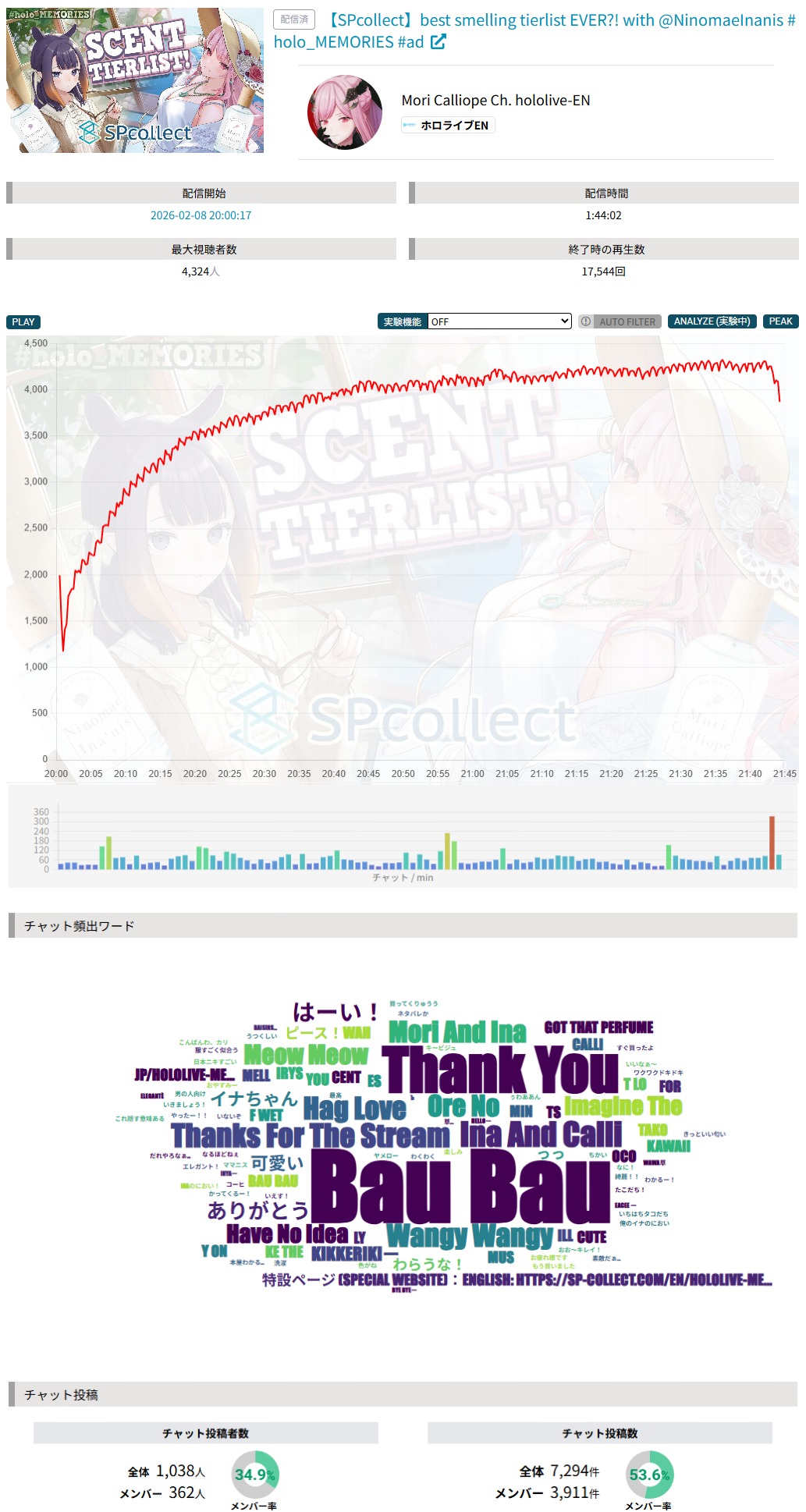 >>109287303FEB 2026 EN SILVER2/1 - Elizabeth - Unarchived Karaoke: 9,5692/2 - Bijou - Animal Crossing New Horizons: 8,8972/3 - Nimi - Minecraft: 10,1892/4 - Baelz - Holo vs Robo: 10,6462/5 - Baelz - Devil May Cry 3: 8,0102/6 - Bijou - Fortnite: 7,1192/7 - Shiori - Outfit Reveal: 25,4202/8 - Raora - Outfit Reveal: 13,070PER COMPANY6x: Hololive English1x: IndiePER STREAMER2x: Baelz, Bijou1x: Shiori, Raora, Elizabeth, Nimi