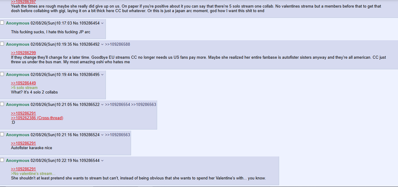 >>109283626>Every time anons talk about how tight-knit the Hololive community is I'll be there to remind themYou're a little late to this after all the shit that happened in 2025