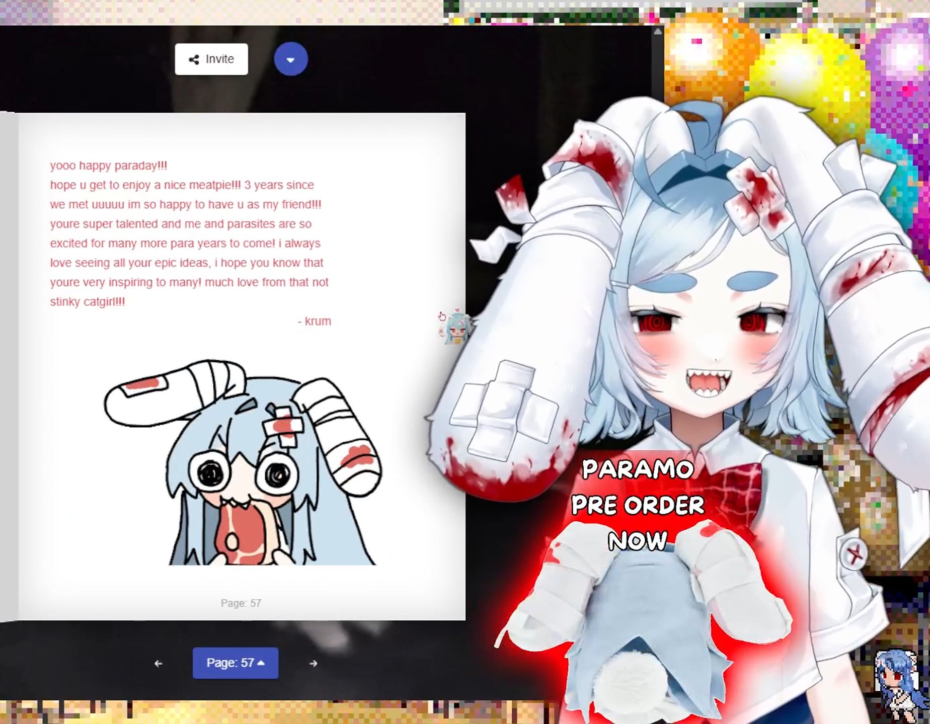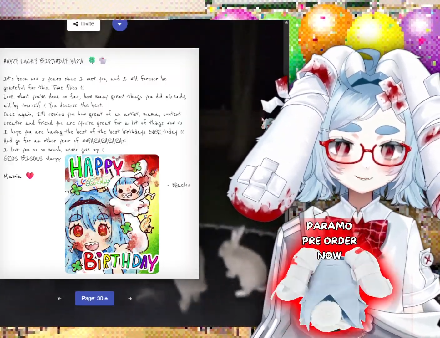 para has a prickly and freaky exterior but underneath is a very sweet and genuine girl. today was her birthday and it felt just as much a party for parasites, especially with the holiday chekis arriving and her going through 12 hours of messages and fanart. hbd cute hardworking lucky lucky lovely lovely bun