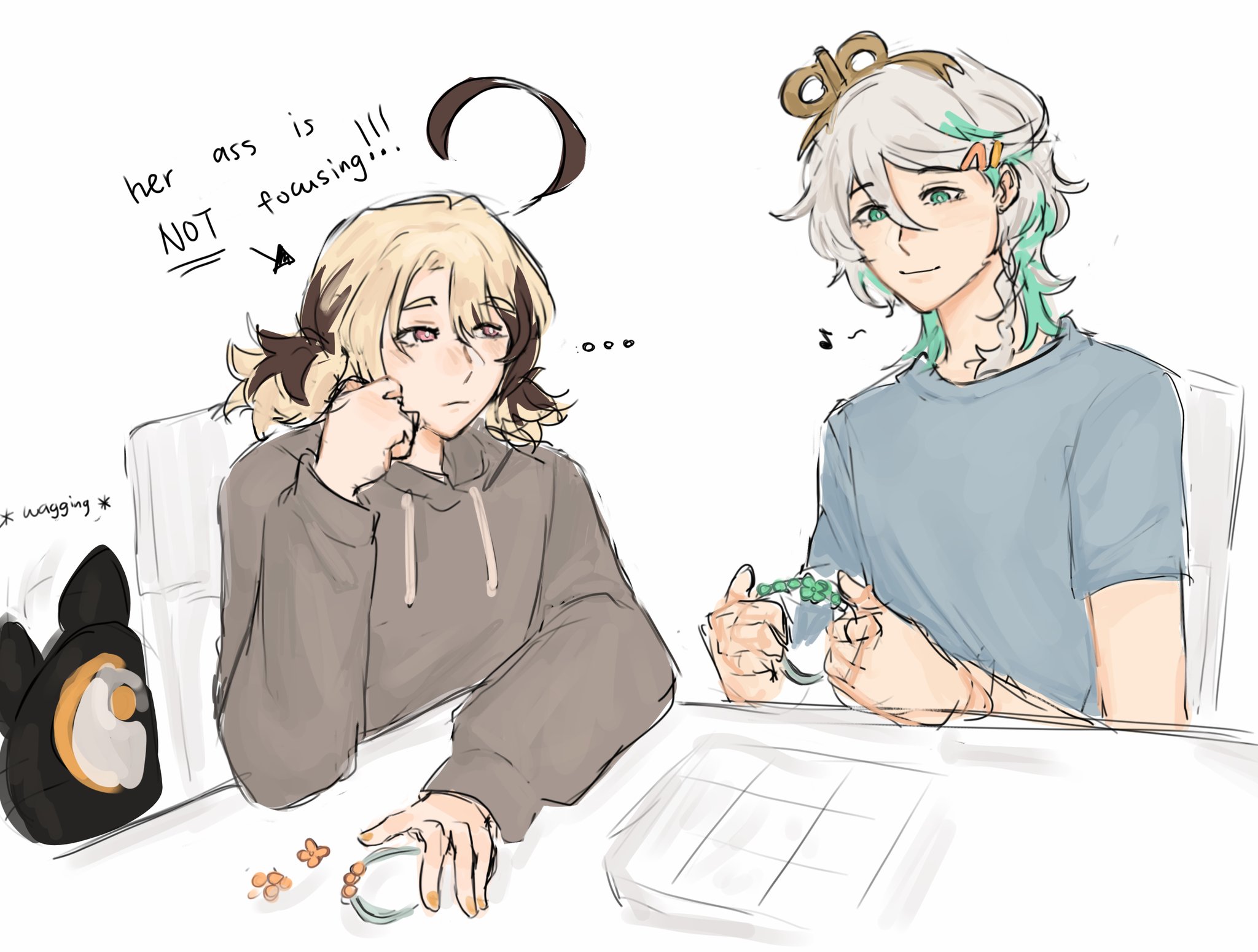 CC was about to ask GG to get some food but she thinks GG is still asleep