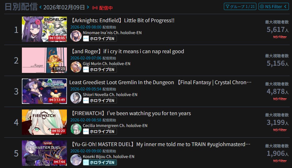 >>109303210No one bought any merch BEFORE the yab.So why would they do it now? Also:>Pippa ticked down>Shiina ticked down>Clio ticked down (but ticked again today, it's neutral)>Erina ticked down>Airi ticked down twice>Ember Amane ticked down twice>Dizzy ticked down twice>Runie ticked down>Eimi ticked down twice>Nitya had her first 3view stream ever and her sub growth stopped after 9 consecutive ticks>Muyu ticked down twice>Eepy ticked down>Iori ticked down>Hina ticked down>Nasa ticked down>Michiru ticked down>Bibi's sub growth stopped after 8 consecutive ticks>Wilhelmina ticked down>Sinon ticked down>Malice ticked down