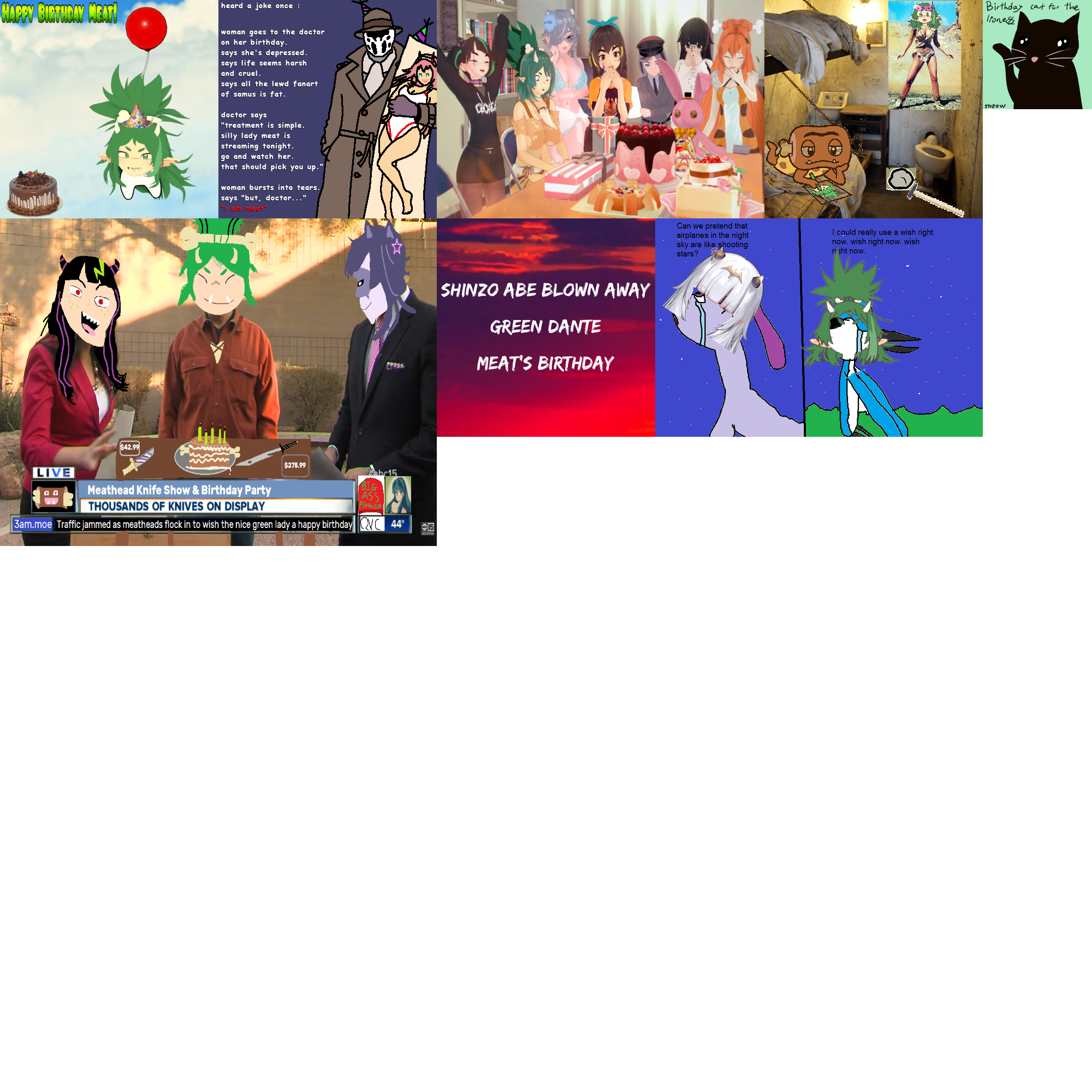 In FIVE HOURS it'll be Meat's birthday, show your appreciation by contributing to her birthday card! Standard card rules apply: Submissions must be SFW and have image dimensions that are a multiple of 200 (i.e. 200x200, 400x400, 200x400)Some things Meat likes for inspiration:>Her friends (non-inclusive): 3AM, Southside, Weeniedesu, Lucy Pyre>Her meatheads>Cats>Wrestling>Trucking>QVC>Omaru Polka>My Chemical Romance>Vidya (Baby Steps, EDF, Suda51, Nier, DMC series, Red Dead Redemption 1, Stellar Blade)>YouTubers (Carpet Bagger, Joe is Hungry, Dr. Parkinstine)Model References:https://mega.nz/folder/kvsXwayQ#oT-vuahxz4nLi7MvGJbloAThe deadline for the card is February 9th at midnight EST, that's 9pm February 8th for PST. Make sure you get your submissions in before then