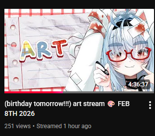 Bat Edition >What is /lig/?/lig/ is a thread for viewers to find, share, and discuss indie vtubers who have on average 500 viewers or more.>Why /lig/?Large indie vtubers have more net fans, but they are outnumbered by 2views by the thousands. This is a thread for the VIP, regardless of what language they stream on.>Can I shill my 499view oshi here?Considering averages fluctuate widely, all the way down to 100 is reasonable. The minimal requirement however is being Twitch partner or the YouTube equivalent in numbers.>Wait isn't that one a corpo?/lig/ is a thread for chuubas of a decent size who aren't defined by their corporate branding, either due to the small size of the corporation or the independence and lack of oversight granted to the talents>/lig/ Numbershttps://lignumbers.neocities.org/>Twitch Clips Guidehttps://pastelink.net/34vd5>VOD Archival Guidehttps://rentry.org/Vod_Archival_Guide>/lig/ VOD Archivehttps://rentry.org/Indie_Vod_Archives_lig>Koikatsu cardshttps://mega.nz/folder/JYtkXJwL#07gAQCQqI_9FsmX9oQJKSA>/lig/ Wheel of Nameshttps://wheelofnames.com/5jh-93j>Tiermakerhttps://tiermaker.com/create/-lig--16586688-3>/lig/ Chuuba Birthday Calendar (WIP)https://www.canva.com/design/DAE-XgWodVg/ofLz4QC1yPPQ4T6TTAE0fw/edit?utm_content=DAE-XgWodVg>Upcoming BirthdaysFebruary 9th - Meat & wwParasiFebruary 13th - KokonutsFebruary 14th - ReiyuguiguiFebruary 15th - SaaFebruary 18th - Moon JellyFebruary 22nd - HinaBoBinaFebruary 24th - SnuffyFebruary 27th - AsariMarch 6th - Lucy Pyre & Fuzuki MikiMarch 9th - SavehymnMarch 12th - Anya Melfissa & Haruka Karibu>OC material for the OPhttps://mega.nz/folder/IIVD1IaJ#cfsRhWdJvzneIoG8HZUPuw>/lig/booruhttps://ligbooru.moe/>Duckshttps://www.twitch.tv/dashducks (embed) (embed) (embed) (embed)Other useful threads:>>>/vt//big/>>>/vt//corpo/>>>/vt//choc/>>>/vt//flip/>>>/vt//haha/>>>/vt//indie/>>>/vt//mint/>>>/vt//swarm/>>>/vt//vrt/>>>/vt//xvsj+/Previous Thread: >>109294690