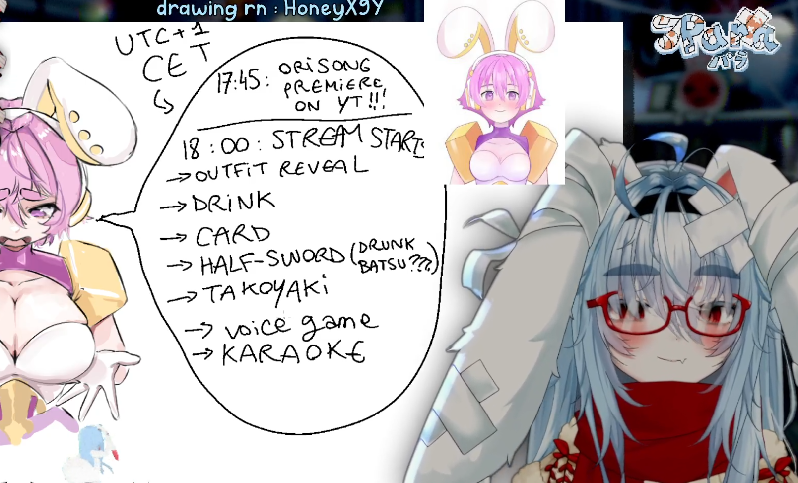 tentative schedule for para's birthday stream:>orisong premiere>outfit reveal>drinking / bday card review>Half Sword>Takoyaki cooking cam>voice game (yapyap? Timeline?)>PARAOKE