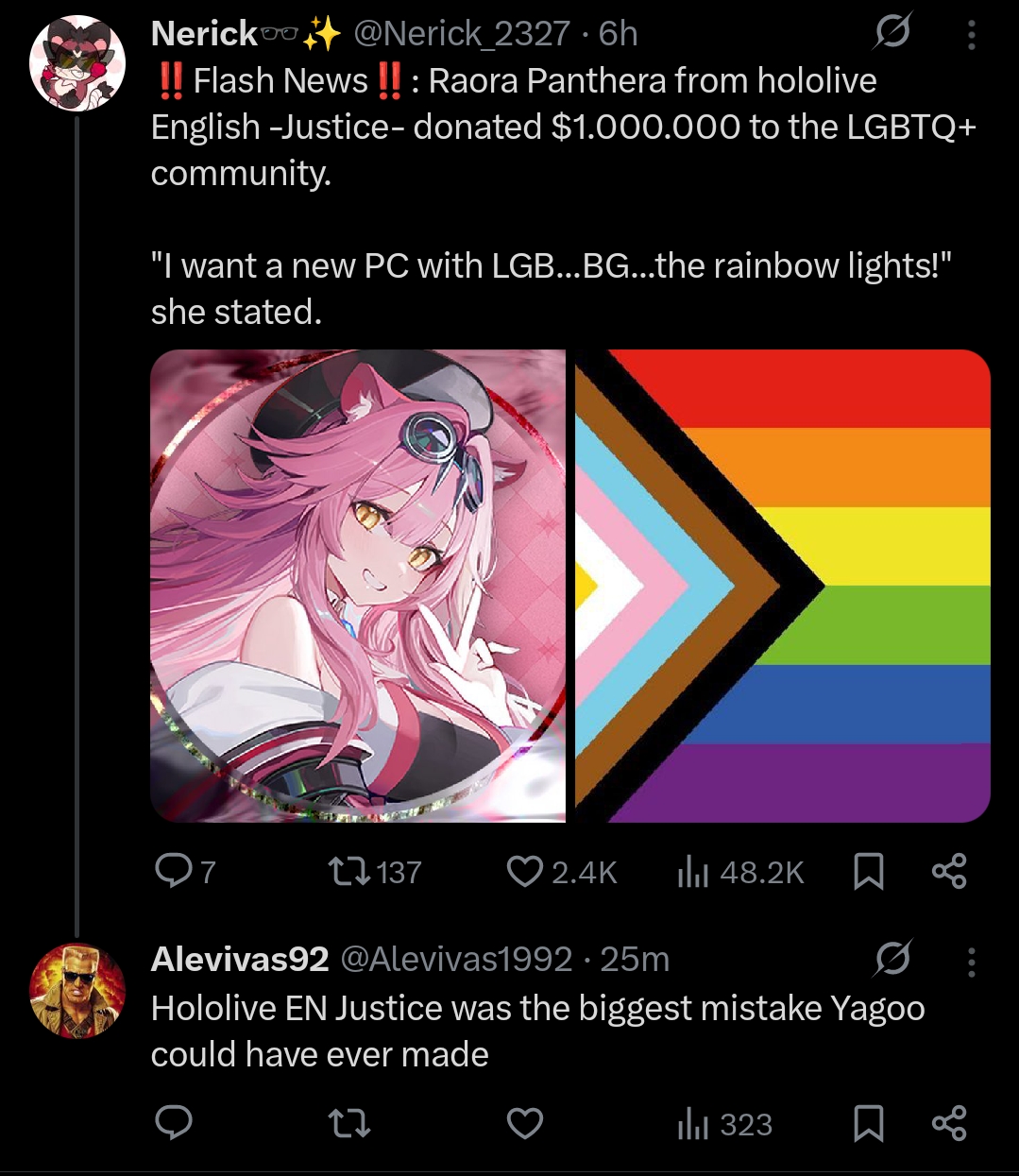 >>109324573At this current rate, not really.After Nerissa added Rule 3 to her channel back in...September I think? Bloodraven has started to wither because apparently Bloodravenfags cannot push the ship if it isn't by gish gallop.