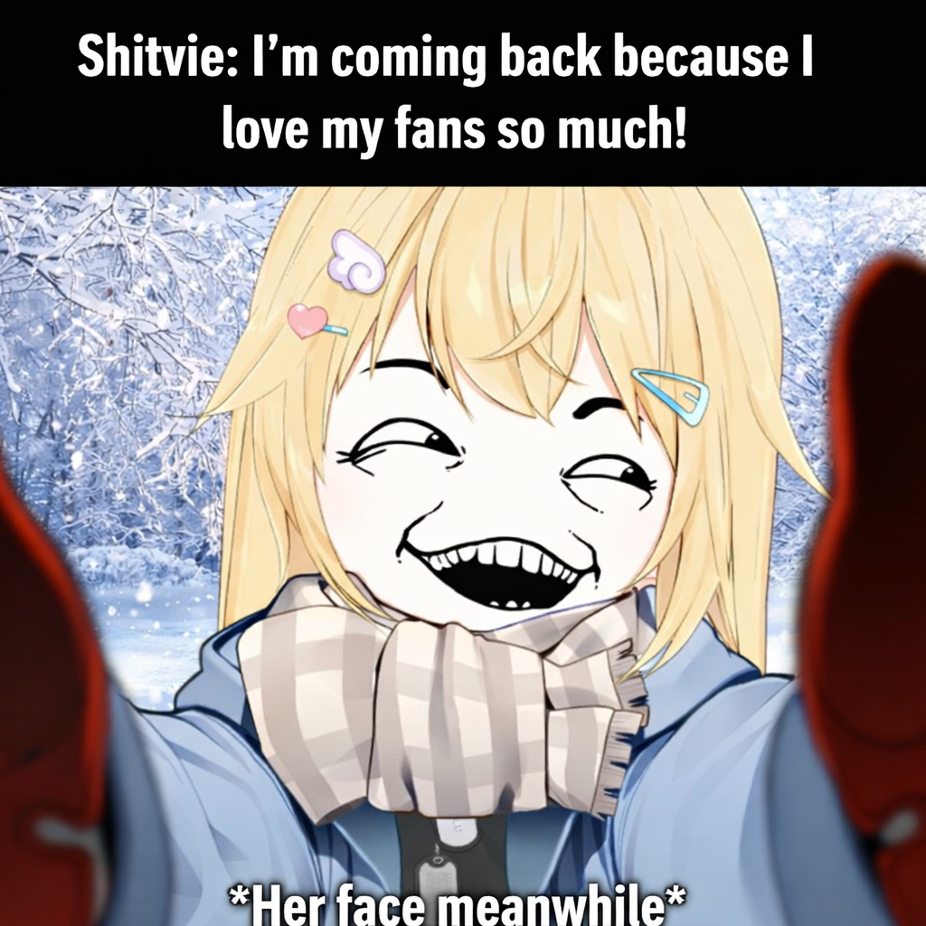 >Being a liar.>Disappearing for a week using I’m sick as an excuse.>When she knows people no longer believe it, the story changes to I went to the hospital.>Taking whole week off to avoid something important that was she promised.What kind of VTuber am I?
