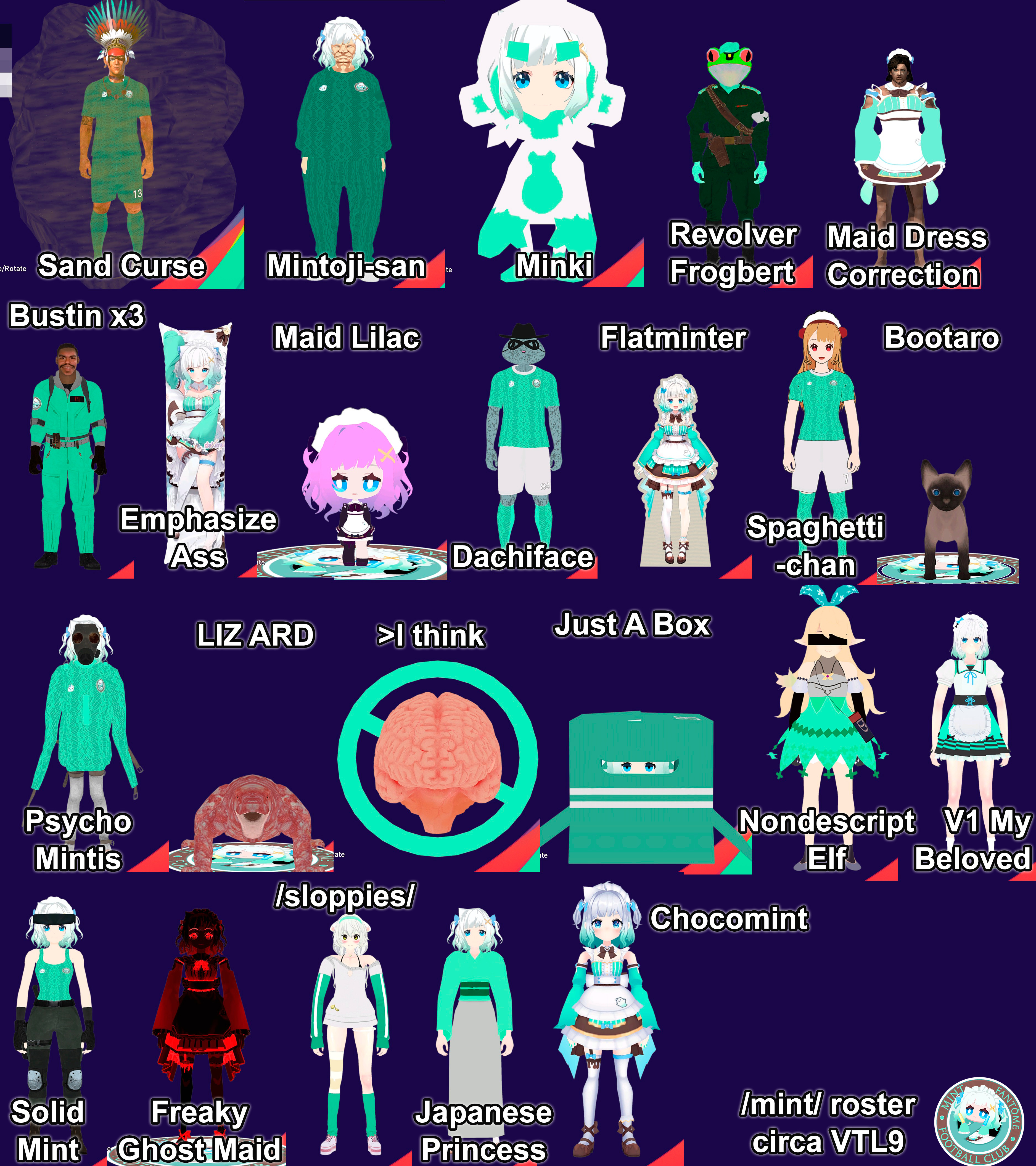 She Got Away... Edition>Her YouTubehttps://www.youtube.com/@mintfantome>Her Membershiphttps://www.youtube.com/playlist?list=UUMOcHHkJ98eSfa5aj0mdTwwLQ>Her Twitterhttps://twitter.com/MintFantomehttps://twitter.com/mintwooooo>Her Blueskyhttps://bsky.app/profile/mintfantome.ghostmaid.cafe>Twitter Spaces, Concerts, Conventions, etc.https://mega.nz/folder/f0MmFYRK#Sd2dbdggLSpw5rAs1SNY6ghttps://rentry.org/MintoConPart2>Unarchived Karaokeshttps://rentry.org/MintoKaraoke>Merchhttps://shop.moso.moe/mint-fantome/https://setsuna.pro/collections/mint-fantomehttps://setsuna.pro/collections/densetsu-exe>Gameshttps://mintfantome.itch.io/freak-or-treathttps://gioba-games.itch.io/fantome-no-nazohttps://gioba-games.itch.io/mintos-autocror3cthttps://gioba-games.itch.io/mint-n-friendshttps://ruzzfe.itch.io/second-button>Musichttps://www.youtube.com/watch?v=ccfSO2XJ67Yhttps://www.youtube.com/watch?v=Yj41JI-jmbshttps://www.youtube.com/watch?v=78NqcZGPfBUhttps://www.youtube.com/watch?v=quKNBWKmNH8https://www.youtube.com/watch?v=gz7xnpVB5OYhttps://www.youtube.com/watch?v=fnko4D9dQUghttps://www.youtube.com/watch?v=FT9IdLhAjLghttps://www.youtube.com/watch?v=EAwmnsxR1Lghttps://www.youtube.com/watch?v=4P3l3sTMYOwhttps://www.youtube.com/watch?v=dEj-WEGnx58https://www.youtube.com/watch?v=ke82vnl8_L0https://www.youtube.com/watch?v=UqI_a48RLj8https://www.youtube.com/watch?v=E2Y_Iv1P-t8https://www.youtube.com/watch?v=ExFMPZIK4pMhttps://www.youtube.com/watch?v=9-bXmJ9t5Zkhttps://www.youtube.com/watch?v=RsnpplOJ-vI>Our Divegrass teamhttps://implyingrigged.info/wiki//mint/Previous thread: >>109297689