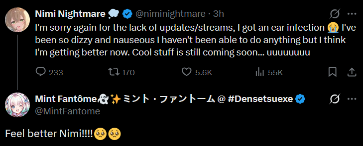 >>109331271She doesn't get as many made for her anymore but also she's been so busy (setsuna was meant to help with this but haven't) that she's been too stressed to work on bitsShe talked about how she wanted to do more skit stuff but all the work meant she was either too busy or too stressed so she just ends up doing normal gaming streams instead