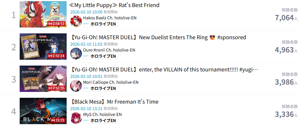 EN songs in the Hololive weekly top 100 Feb 1-7 (1st week songs excluded):