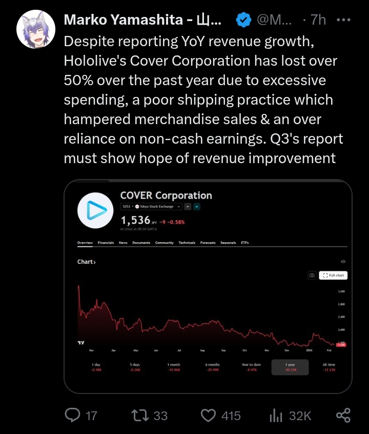 >Overall what i know is that their ex talents have been doing fiancially way better now than when they were in holo.>Some talents that are still around have been speaking for months how they barely make rent nowadays and barely break even with their expenses and incomes. >Some of them even owe cover money from what ive heard. Its looking pretty bad desu.grim
