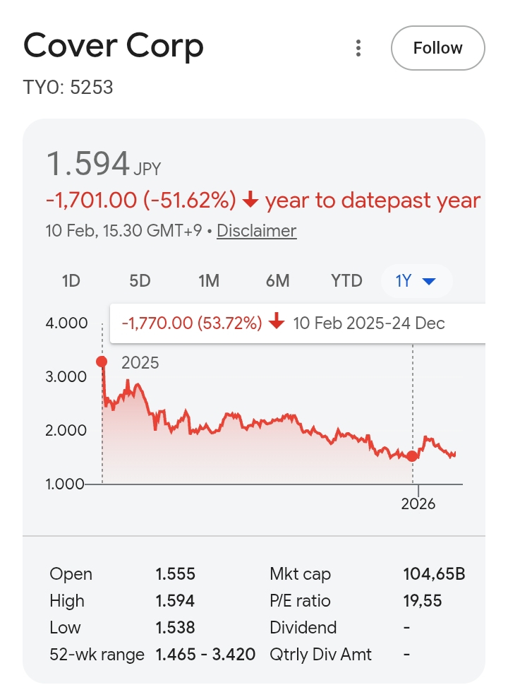 >>109339279If revenue was all that mattered, the company would still be streaming from a bedroom. Investors aren't 'tricking' anyone, they’re providing the $20 million upfront for their 3D studios in 2023 and tech infrastructure that revenue alone couldn't fund for a decade. You’re confusing 'parasites' with 'fuel.' Without that capital, Cover is just a khia agency, not a global tech leader.