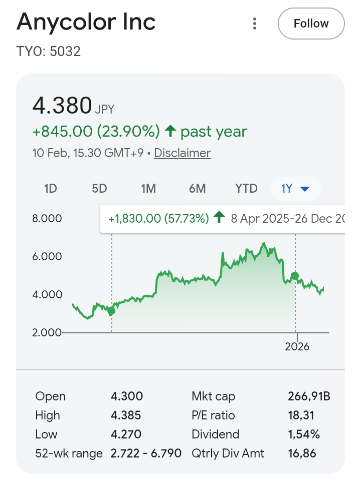 I own both Anycolor and Cover Corp stocks