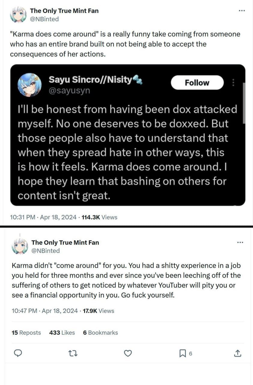 >>109343894For context Sayu was talking about Kenji getting doxxed by his own friends, after Kenji made a video on Zaion that fueled her harassment campaign and certainly led sisters to spread her doxx harder