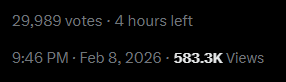 >>109353638desu Twitter is pathetically easy to bot, 4k bot votes is like 12$ on Socialwick