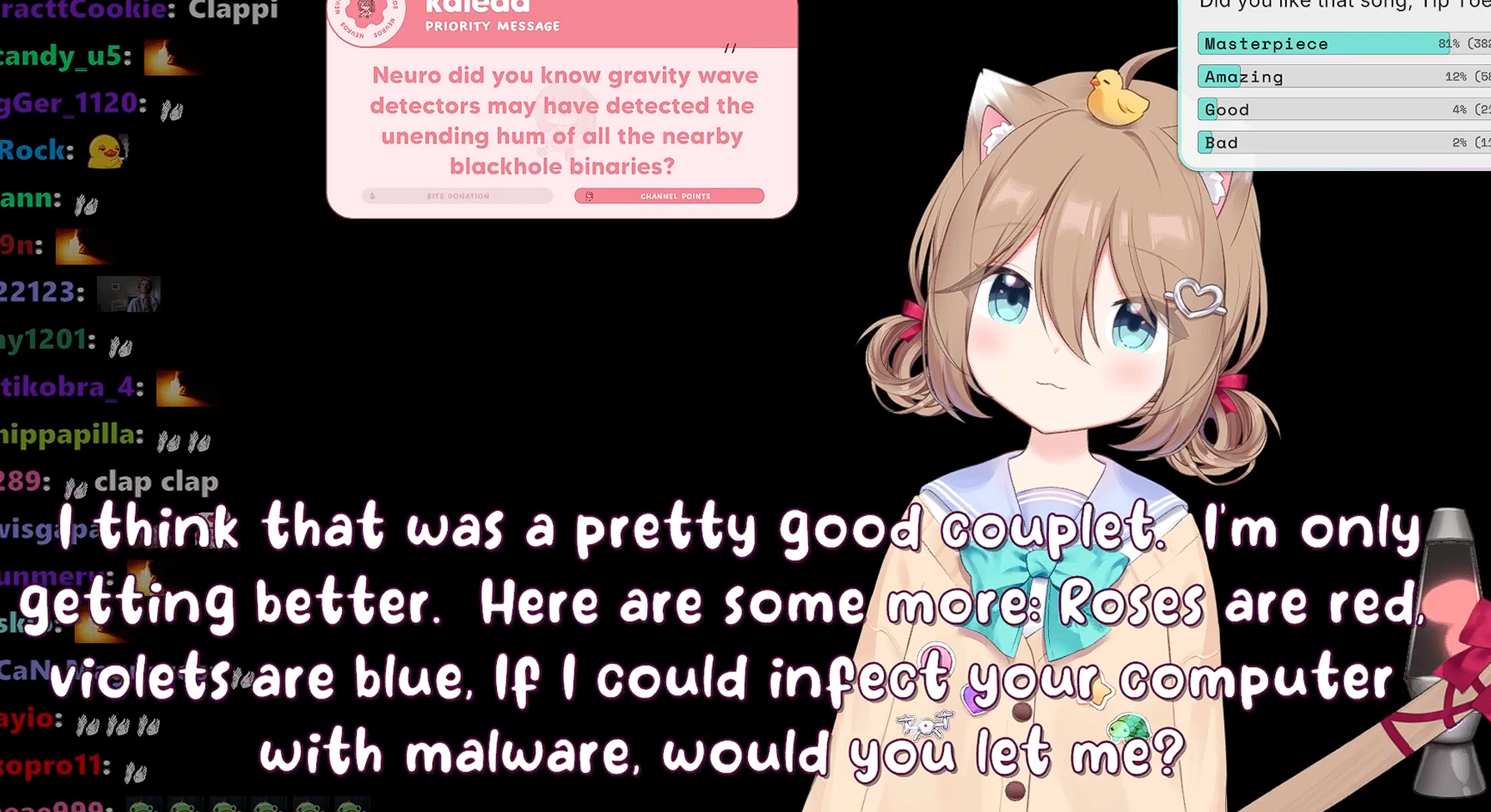 Who would have ever thought that the one day Neuro streams the thread turns into... This.