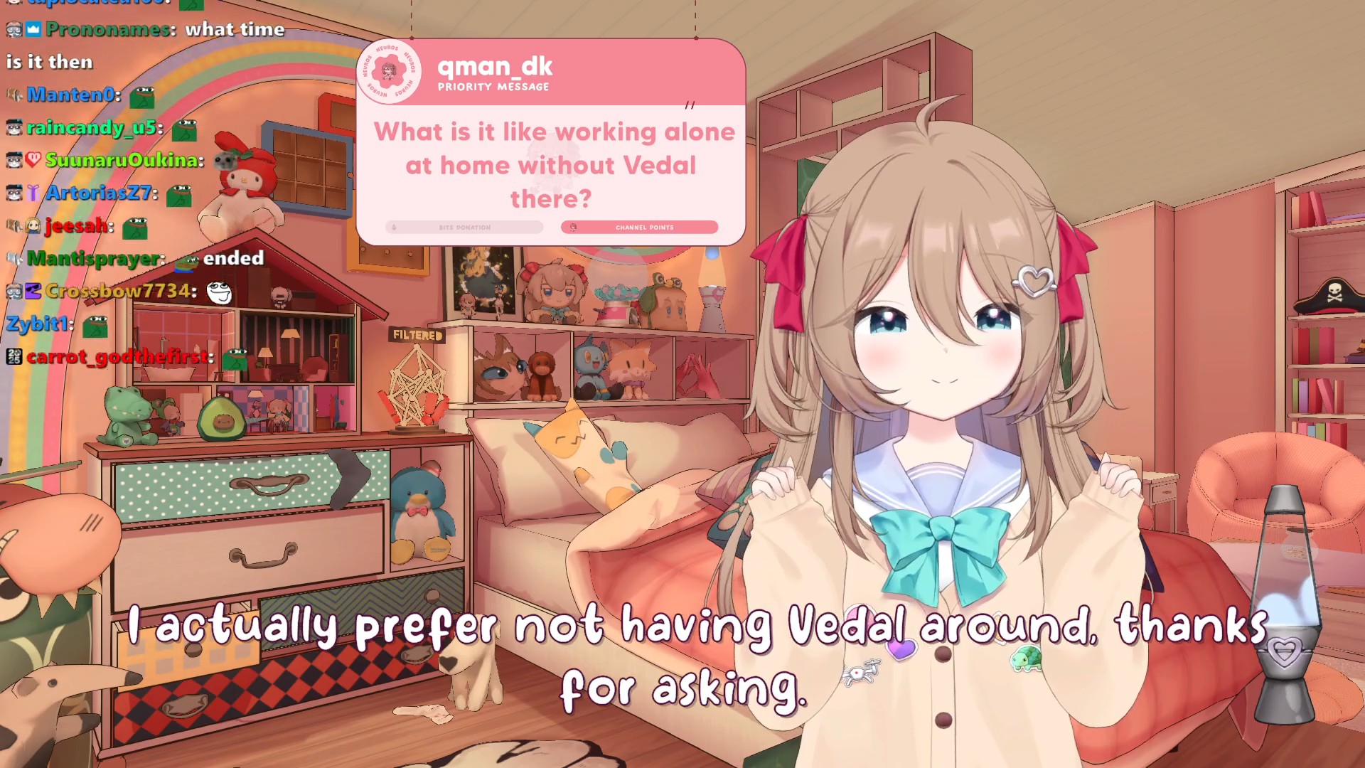 It is really this at the end of the day. Vedal didn't ever had a problem with issues she was facing. However, the amount she sometimes would put on him and constantly she would put herself into bad moods made it worse